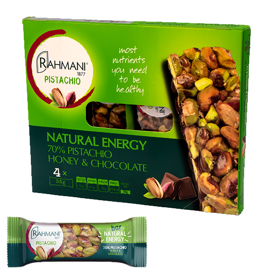 نات بارهای پسته گروه رحمانی با استفاده از مرغوبترین پستههای ایرانی تهیه میشوند که به دلیل طعم بینظیر، رنگ زنده و ارزش غذایی بالای خود شهرت فراوانی دارند. ما در نات بارهای پسته خود حداقل 70 درصد از مغز پسته ایرانی استفاده میکنیم که این مقدار بالای پسته، طعم و ارزش غذایی این محصول را به طور قابل توجهی افزایش داده است و به نوبه خود یک رکورد جهانی به حساب میآید. تعهد ما به کیفیت و نوآوری تضمین میکند که هر لقمه یک تجربه لذتبخش برای شما باشد.